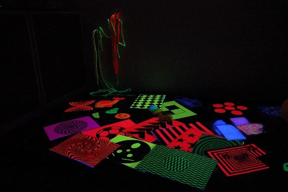 - Con la luz ultravioleta utilizar los materiales con abrillantadores ópticos para llamar la atención del niño: guantes fluorescentes, pelotas, tarjetas…y moverlos dentro de su campo visual.
